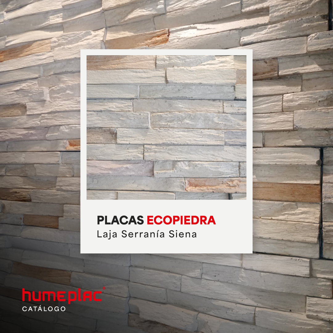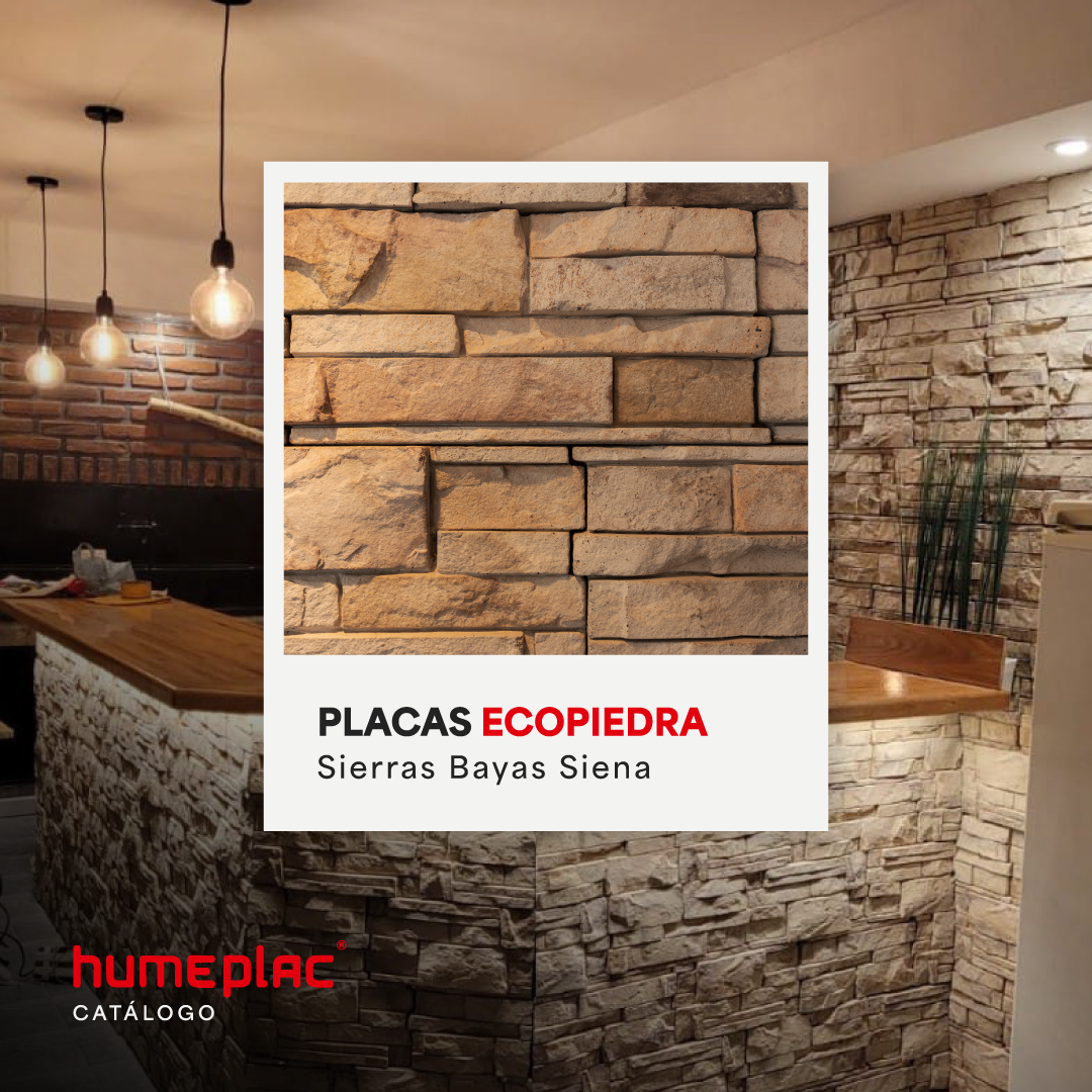 Ecopiedras Nuestras ecopiedras combinan diseño natural con sustentabilidad. Su textura realista y liviana transforma muros interiores o exteriores, aportando calidez y estilo. Explora nuestro catálogo Tu solución es Humeplac Beneficios:Alta resistencia al clima y humedad.Variedad de tonos y formatos.Colocación rápida sin obra húmedad.Usos: Livings, frentes de locales, muros de acento. Contactanos y obtené asesoramiento sin cargo Click acá